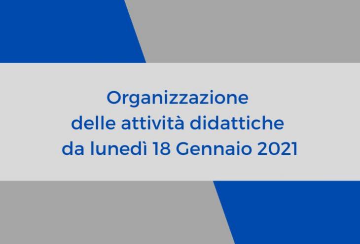 Organizzazione delle attività didattiche da lunedì 18 Gennaio 2021